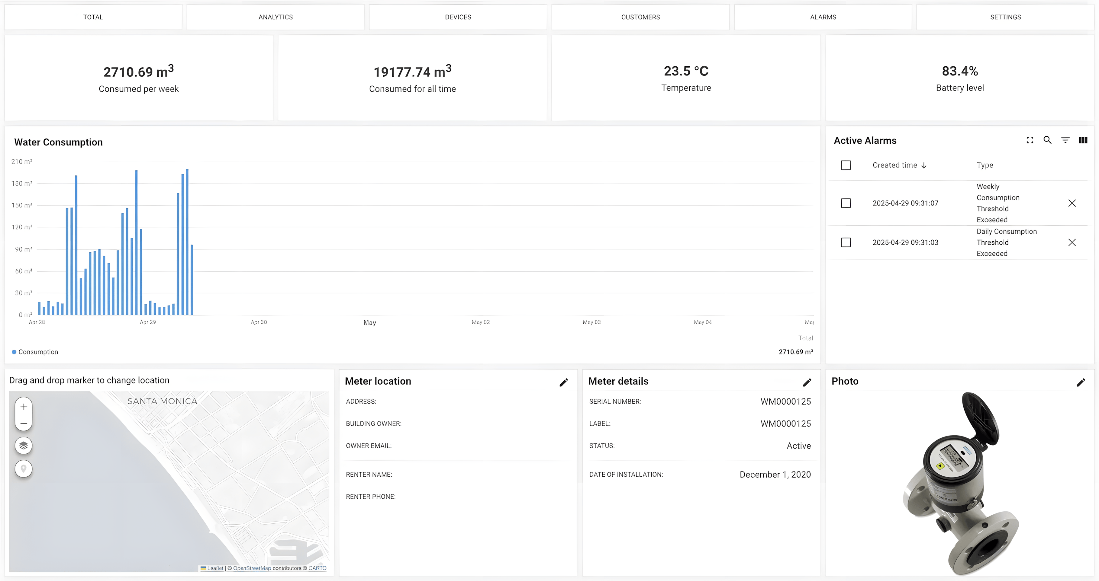 Live and historical water flow and consumption visualisation
