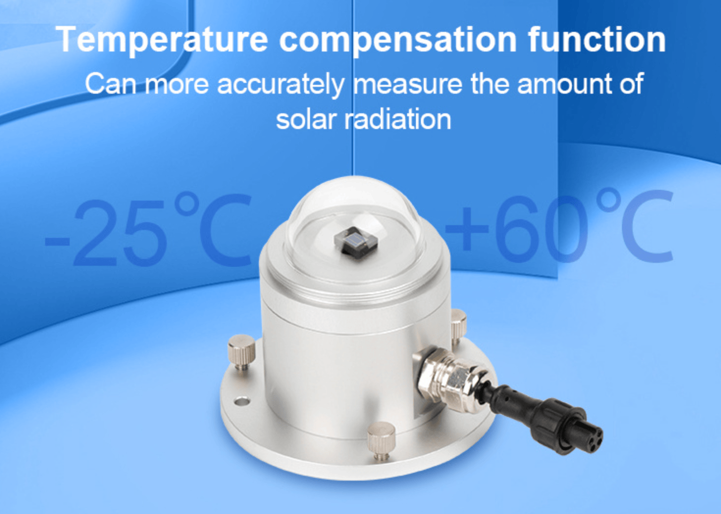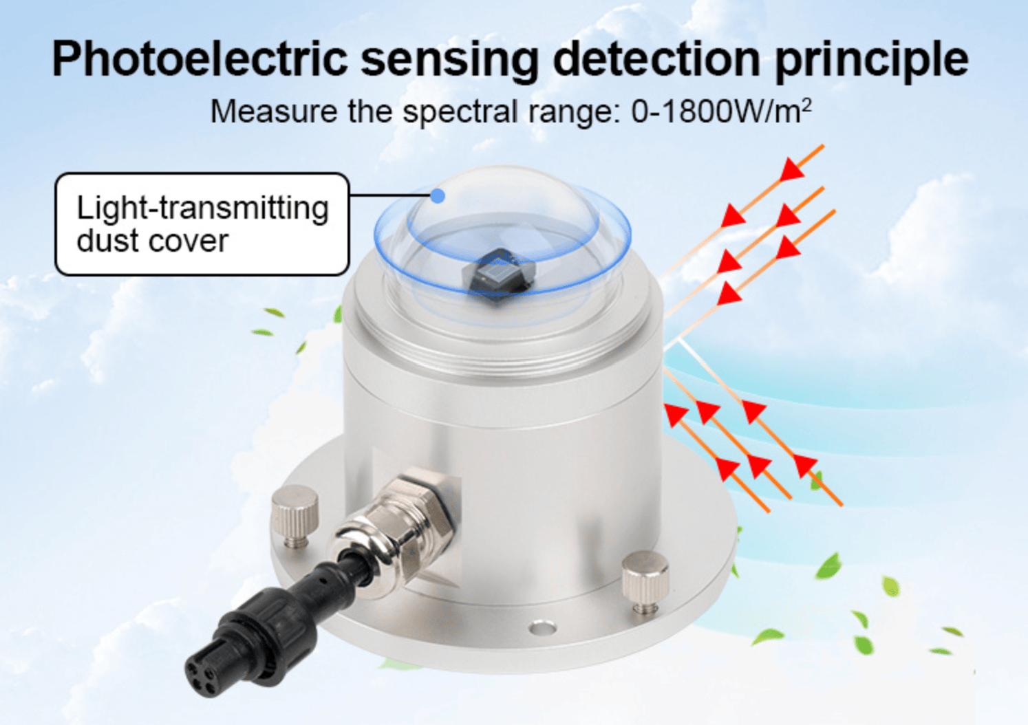 The IQPSR solar radiation sensor uses the photoelectric principle to measure the total solar radiation. The radiation sensor uses a high-precision photosensitive element with wide-spectrum absorption, high absorption in the full spectrum range, and good stability. At the same time, a dust cover with a transmittance of up to 95% is installed outside the sensing element. The dust cover is specially treated to reduce dust adsorption and effectively prevent environmental factors from interfering with internal components. It can measure solar radiation more accurately. The product supports analog output and RS-485 digital output to convert the current solar radiation value. The product has a simple wiring method, a small and beautiful appearance, and occupies a small installation space. It is widely used in solar energy utilisation, meteorology, agriculture, aging of building materials, and air pollution. Departments to measure solar radiation energy.