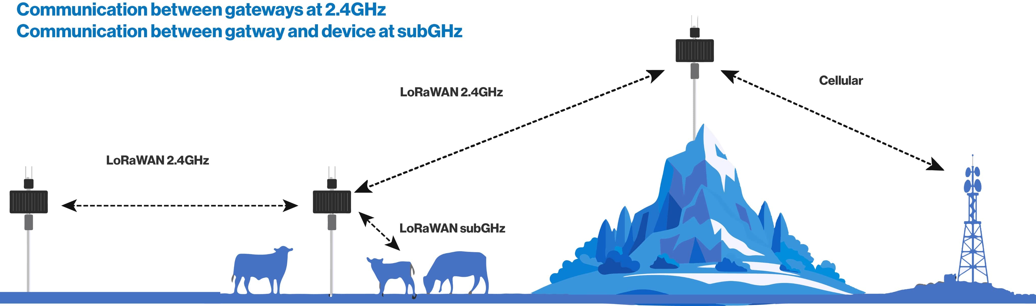 The Gateway Mesh is an open-source protocol co-developed by ChirpStack and RAKwireless. It enables a multi-hop LoRaWAN mesh network, significantly extending coverage beyond standard single-hop gateways. Designed for outdoor scenarios, this solution uses 2.4G LoRa for gateway-to-gateway communication.