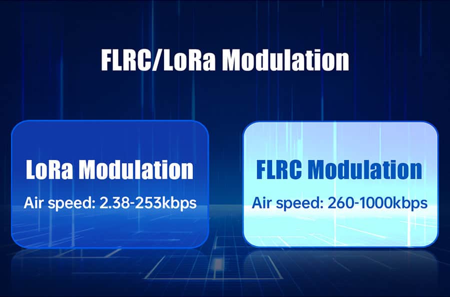 FLRC/LoRa Modulation; High/low speed, medium/long distance transmission