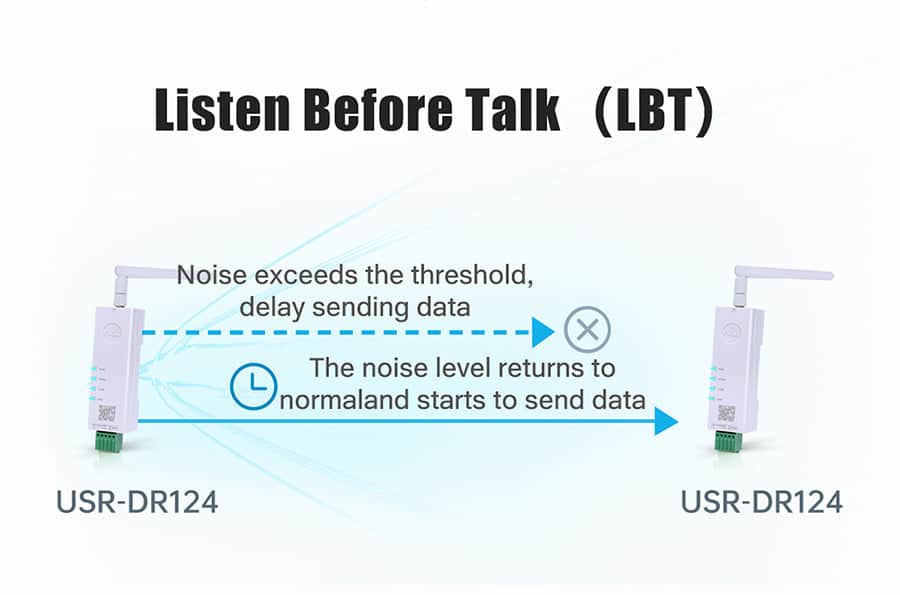 Actively monitor the channel environment noise before sending, and delay sendingwhenthe noise exceeds the threshold. This function can effectively improve the communication success rate of the module in harsh environments, and can be used for networktransmission and anti-collision processing.