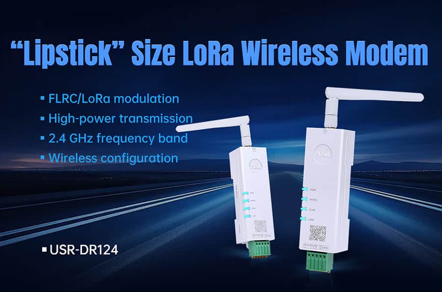 The USR-DR124 is a new-generation LoRa wireless data transmission and an ultra-compact 2.4GHz LoRa modem developed based on the SX128x chip. It features an RS485 port, high cost-effectiveness, strong anti-interference capability and good stability. It operates in the frequency band of 2.4GHz-2.5GHz, with a power supply range.