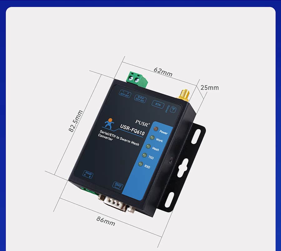 1 x Power, 1 x Work, 1x Mesh, 1 x TXD, 1 x RXD