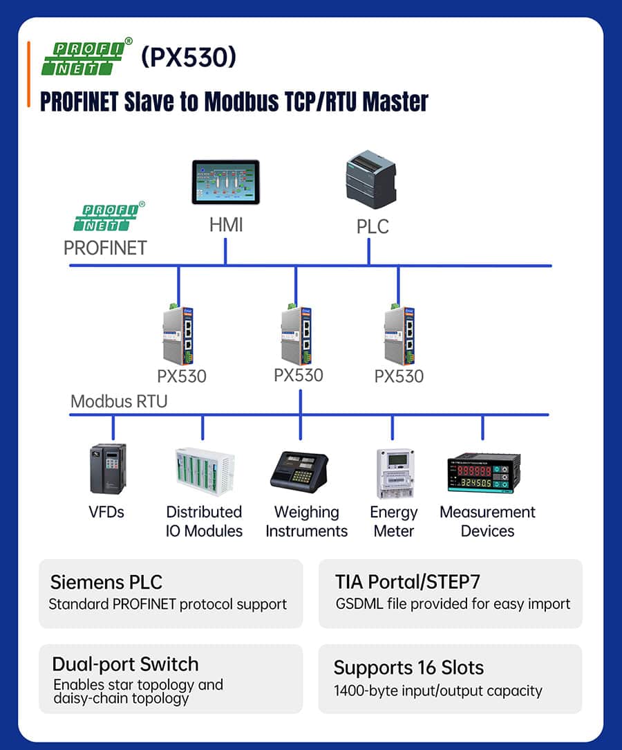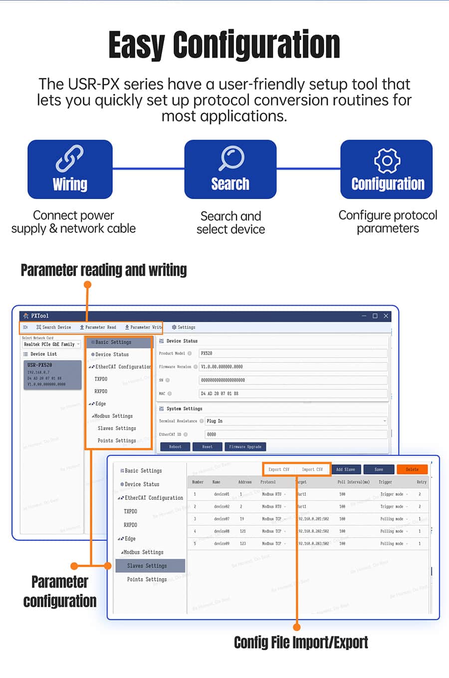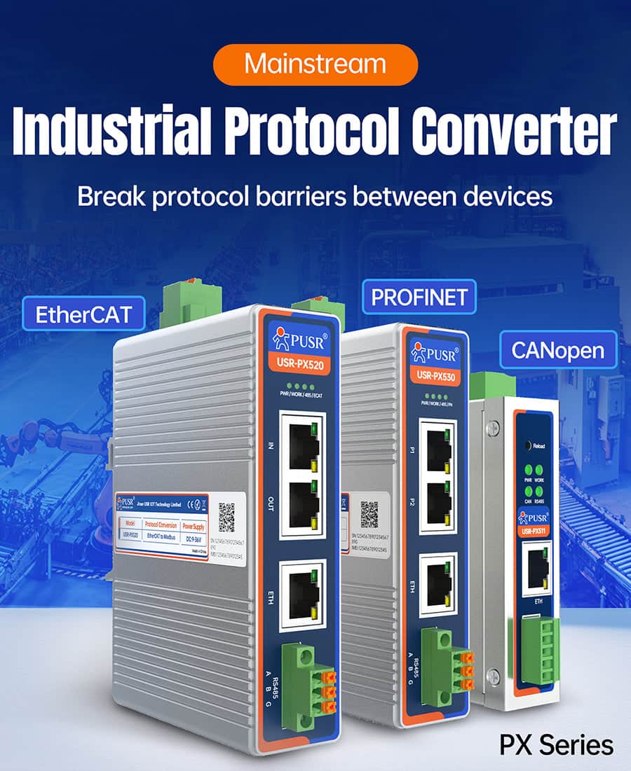 2× EtherCAT ports (IN/OUT), 10/100Mbps auto-negotiation, integrated switch functoin